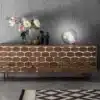 A system for your living-room, where spaces and lines have a fundamental role. HONEY TV stands and sideboards, stand out for their distinguished woodworking – Canaletto walnut and heat-treated dark oak, and the accurate choice of glass.