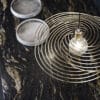 According to the designer’s drawing, the laser cuts the spirals of the chandelier from a single metal sheet; the item is curved, shaped and has a brushed brass finish. The dynamic shapes conceived for the industrial design are projected onto the ceiling when the light is on.