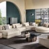 The Oasi sofa system consists of different elements, and it is extremely versatile, able to find its place in any context and to compose different, multifunctional configurations, from the classic angular sofa, to the ergonomic chaise longue or the ottoman.