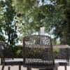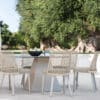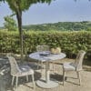 When an unmistakable design meets versatility, products like Emma are born, a handy and resistant outdoor chair, ideal for decorating large terraces and dining rooms in restaurants and hotels. The seat shell in plastic material is designed to allow water drainage. Different types of backrest can be mounted on it, with synthetic fiber weaving, in texture or in fabric, and with legs, in aluminum or iroko wood. Each finish tells a different nuance of Emma’s personality, making it enter into harmonious dialogue with any type of environment.