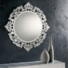 Romantico is a bevelled mirror with a 15cm metal frame, hand-covered in leaf. Available round, square or rectangular. Small irregularities in the leaf covering are proof of the manual process.