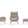 A design inspired by the typical appearance of beetles. The structure is divided into three parts and elegantly supported by narrow metal legs. The external lines are taut and well-defined, whereas the padded parts are soft and abundant.