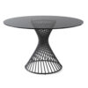 VORTEX does it even better thanks to its central, functional and decorative base, with a helical metal tube structure that personalizes the table. The glass or ceramic-glass lid fits perfectly to the metal base and is fixed to the structure by three circular steel plates.