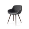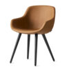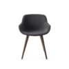It has a comfortable and enveloping padded seat like an armchair, but the structure with four wooden legs lightens the design and allows it to be used as a chair, even next to the dining table.