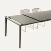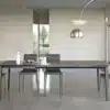 Table with extension and lacquered Metal frame. Top and extension in Glossy glass, Velvet matt anti-scratch lacquered glass, SuperCeramic or SuperMarble.
