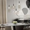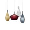 Blown glass pendant lamps transparent or satin-painted in the colors Senape, Bordeaux, Verde Militare, Blu-Notte, Fumo. Support in polished steel and black canopy.