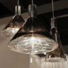 The Accademia collection, born with the tables, is enriched with pendant and table lamps. Two dimensions to create dynamism and rhythm, two functions both as table lamps and as pendant lamps. Glass shade in sputtering shaded finish copper, bronze or silver.