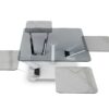 EXTENSIBLE COFFEE TABLE WITH 5 GLASS OR CERAMIC TOPS. EQUIPPED WITH AN INNOVATIVE SYNCHRONIZED MECHANISM THAT ALLOW THE 4 TOPS TO BE OPENED AT ONCE, WITH A SIMPLE GESTURE. SUPPORTS IN PAINTED OR CHROMED STEEL.