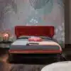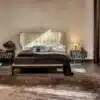 A hint, a whisper quietly surrounding your sleep. Ambra bed’s headrest is both its focal point from a design perspective, and because of its comfort: it is padded, and upholstered with all of Tonin casa’s collection of leather, eco-leather and fabric, and it offers an ideal support during your rest. The wooden structure, finished with walnut or oak, is characterized by a simple and delicate shape, that leaves wide room to appreciate the richness of its quilt.