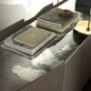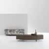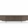 A small architectural feature plays the starring role in the home. With its sculptural shape, in both the high and low version, the Angle sideboard is distinguished by a tapered design and a reduced depth. The frame, body, top and doors can be ordered with customised materials and finishes.