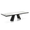 The Apian table, with elegant proportions, is the expression of a design approach attentive to the architecture of the project and its realization with carefully crafted materials. The lightness of its appearance is inspired by the theme of the metal sheet that curves and tilts, drawing the base characterized by a sharp and strong line where the fixed lid rests. The base reveals the double painted metal sheet as a detail, creating an interesting play of light that illuminates an area that is normally left in shadow. Apian has everything to constitute a true surprise element in any interior design project.