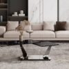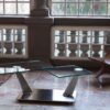 EXTENSIBLE COCKTAIL TABLE WITH SYNCHRONIZED REVOLVING GLASS TOPS. BASE AND SUPPORTS IN GALVANISED OR PAINTED STEEL. AVAILABE ALSO WITH CERAMICS TOPS.