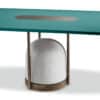 Oval top available in black ash or lacquered with central detail in bronze or brushed pewter and with round top in black ash, lacquered or decorated in pewter with a concentric lathe for a spiral optical effect.