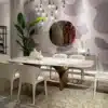 Delicate curved wooden legs support Arco, a table with a porcelain stoneware top in the new Tundra finish. A design element of great balance and harmony, to enhance any environment with elegance. Top available in different finishing: Artistic glass, porcelain stoneware, wood and marble.
