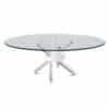 Coffee table with base available in blue, green, red, transparent or white sandblasted Murano glass. Ring in white, blue or green sandblasted glass . Base available also in ribbed transparent, tea or gold Murano glass or in Rugiada finish. Glass top 12 mm thick.