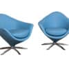 Hugging easychair with rotating metal base. Upholstered with fabrics from our collection.