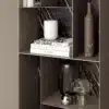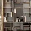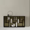 Bookcase module with lacquered metal sheet frame with optional top in glass and optional base in dark brass and matt black metal frame.