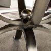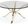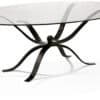 The glass top is available in clear or bronzed glass, with beveled or flat polished edges. The steel plate supporting the framework is tapered, cold-bent and hand-polished.
