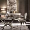 Atlante glass table with round, oval or rectangular top and steel plate base.