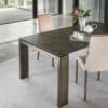 The Atlantis table has an extension system consisting of a single folding ceramic extension in continuity with the top. As with all elements in the Riflessi collections, it is possible to customise the legs and the ceramic top with numerous finishes.