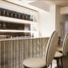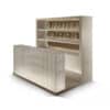 Bar unit composed by: wall unit as special version of Avantgarde libreria in shiny lacquered wood with applications of bevelled lacquered glass on the fronts and back in white lacquered glass, smoked mirror, Canaletto walnut or in Marble glass, with 2 long shelf and 4 doors; Bar counter with light in extraclear, bronze or smoke with frosted and bush-hammered finish or in glass with Vienna pattern design; platform in shiny finish matching the bookcase. Optional cooled nottle holder and Led lighting on the shelves.