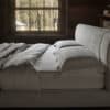 The AVENUE bed, designed by architect Joe Garzone, features an upholstered headboard with a comfortable look and an essential style, embellished by the stitching on the headboard. The base is in die-cast metal and is available in two different colours.