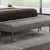 The AVENUE bench recalls light and contemporary lines. The Avenue base in die-cast metal supports a soft polyurethane cushion upholstered in fabric or leather.