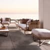 The Babylon pouf is an elegant and personality-rich complement. The refined weave in hemp rope that outlines its perimeter is an original detail that acts as a trait d’union with the seats of the homonymous collection. Its generous dimensions and its spacious cushion allow you to use it in different ways, for example as a seat or as a support where you can place objects that can serve when you spend time outdoors, in the daily life of the home garden or in relaxing in hotel or poolside.