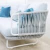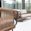 The Babylon sofa has a sturdy structure in painted aluminum, on which a synthetic hemp fiber rope is woven at regular intervals, which makes the profile of the back dynamic and airy.