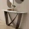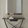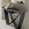 Console with lacquered metal frame, top in Veneer and SuperMarble.