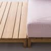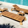 Its design stands out for the irregular arrangement of the teak wood slats of the top, which create an elegant and dynamic “barcode” effect.
