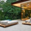 On a supporting structure in solid teak wood, with slats of different sizes, cushions with regular shapes lie, which shape the seat and back of the Barcode sofa. The simple and essential design of the Barcode modules offers ample possibilities for customization: hence the possibility of creating unique compositions, which allow you to enjoy the best of the outdoor space both in the home garden and in the relaxation areas of clubs and spas.
