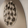 Shaped mirror with fused glass insert.