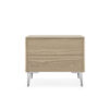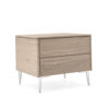 BOSTON model nightstand with two-drawer wooden structure. BOSTON is a nightstand with a linear and modern design. The drawers without handles open with the push-pull system and have a soft closing mechanism. The feet can be chosen from wood with a combined finish or from aluminum.