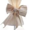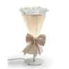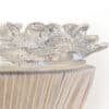 Table lamp with base in mirror glass. Iron support with lampshade in ivory pleated fabric and cover in sandblasted glass with flower decorations in transparent Murano glass. LED system