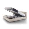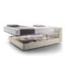 Vertical lines to mark the upholstered bed ring. Its headboard, available in two heights, is characterized by the intersection of these lines with horizontal signs showing a strong character. These intersecting lines form a smooth texture, revealing a young and contemporary design. The storage version is available with the base mechanism “one movement” and “two movements”.