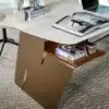 The large-sized Bridge executive desk is embellished with a porcelain top and elegant bronze and satin gold finishes. The top with a soft profile and a thin geometry with rounded edges offers a comfortable support to those who work. The base of Bridge recalls its evocative design in the name and communicates openness and dialogue, inviting sharing. Bridge is fitted with side drawer and equipped on the outside with a practical storage compartment.