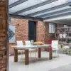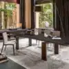 The solid endurance of an almost legendary city – Brooklyn – was the inspiration leading to this table: a wooden, regular and geometric base, onto which fixed, or extendible tops are placed. Both tempered glass and ceramic glass are available for the tops.