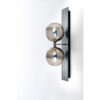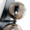 Wall lamp with support in smoked mirror glass, plain or with London engravings. Equipped with 2 spheres diam. 16 cm in shaded sputtering finishing bronze, copper, gold or silver finish with LED