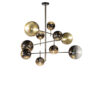 Suspension lamp with metal structure in Bronze finish. Spheres in borosilicated glass transparent,  with shaded sputtering finish bronze, copper, silver or gold or in Puega finish