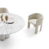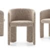The Cali chair is inspired by the fourarmed Indian goddess, Kali, metaphorically represented in this product in its fully upholstered legs, bringing the promise of stability.