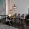 A marriage of lines, wide, with a stable core; blunted corners, to remind the shape of a next generation aircraft. Calliope table combines the beauty of steel, its strength and durability, its feeling of modernity, with the luxury of ceramic, glass, or porcelain. Contemporaneity can perfectly marry your taste, your living, your design.