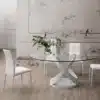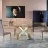 The strength of the metal structure joins the elegant marble legs and the fixed glass top, making Capri a symbol of the Italian essence. It is enriched by a discreet luxury, shining and refined, it represents care, precision and devotion. Once again, materials and technique, nature and innovation aim at creating an exceptionally balanced product.