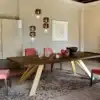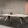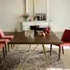 A metal net with precise and straight corners aiming towards the walnut and oak wooden or laminated tops, completed with solid wooden details. Metal quality and technological value are painted matt white, matt gold, carbon grey, to create perfectly adaptable light effects. Suitable for the most refined taste.