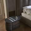 The CHARLIE collection has sinuous and delicate lines. Composed of a curved solid wood structure. The tops are available in different finishes in marble, glass or wood. The drawers handles are in painted metal or Bronzed Brass