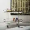 Food trolley on wheels with metal frame, top in Glossy glass, matt Velvet matt anti-scratch lacquered glass or SuperMarble