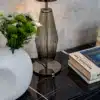 Elegant designer pendant lamps, formed by transparent crystal shapes with delicate geometries and details in black chrome finish: the light reverberates through the ribbed surface of the glass in amber and smoky shades, creating a warm atmosphere. Chic lamps can be combined in multiple compositions and positioned at different heights and distances, to personalize any living space. Chic is also available in the table version, with a painted metal support base with a bright chrome finish.