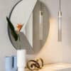 The essential, elegant regular shape of the Circle mirror creates an unexpected contrast with the three-dimensional mirror surfaces of the adjoining inclined sections. The effect is of a dismantled reflected image and fascinating refracted luminosity that open up new visual perspectives and an original split distribution of space.