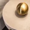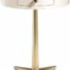 The steel central base is cone-shaped using cold bending process. Brass or gold electroplating finish. Hand-decorated top and lined drawer with golden knob. Its modern design makes it perfect for the bedroom or for the living room, as a side-sofa table.