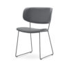 The CLAIRE sled-shaped chair is characterized by a wide seat and a profiled backrest, both lightly padded, to ensure maximum comfort. In addition, the chair has four neutral-colored anti-shock plastic skids, located under the skid-shaped base.